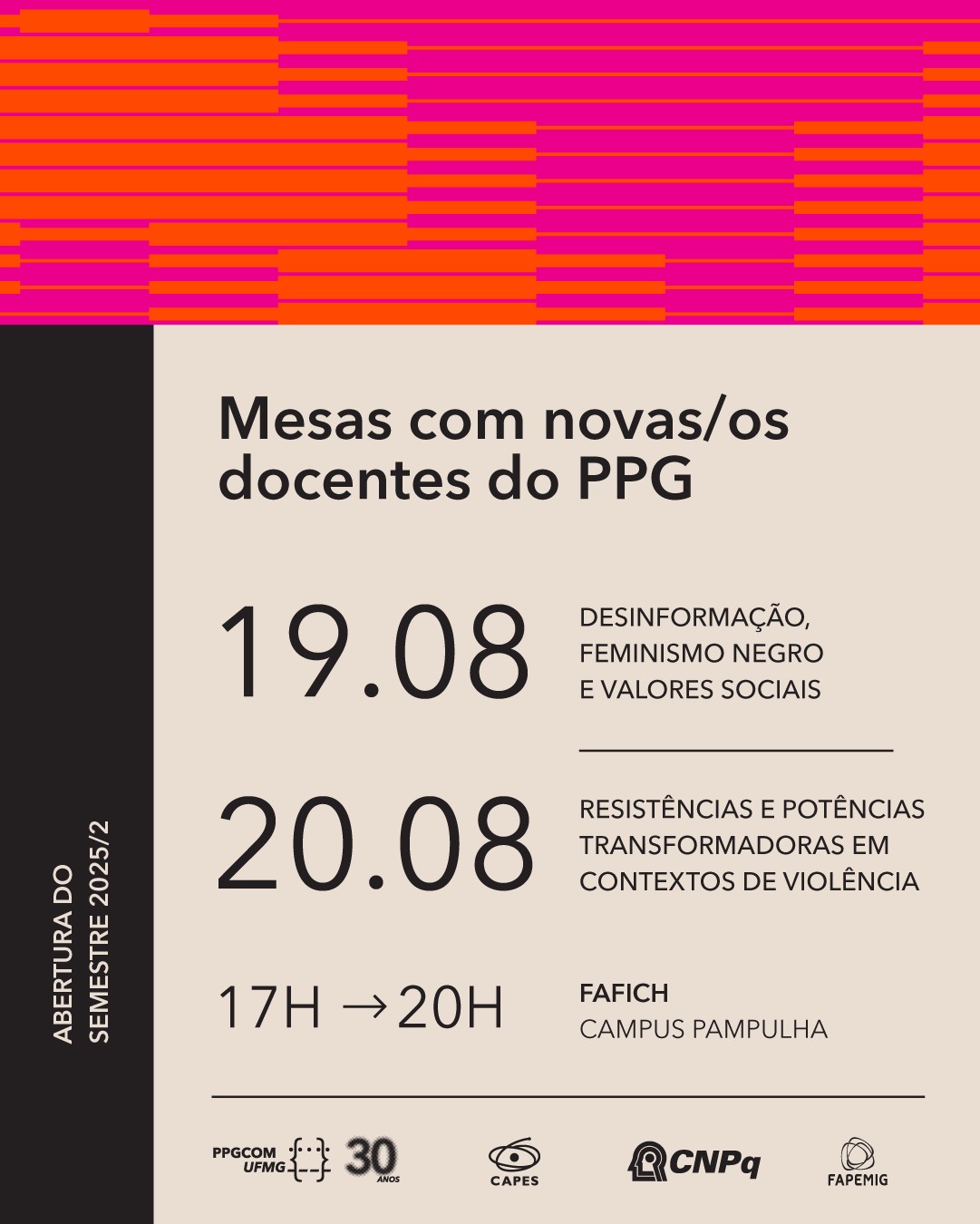 Docentes recém-credenciadas/os junto ao PPGCOM/UFMG são as/os convidadas/os especiais das atividades de abertura do segundo semestre letivo de 2025.