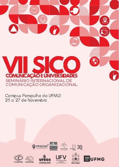 Na expectativa de encontrá-las/os bem, temos a satisfação de convidá-las/os para o VII SICO (7º Seminário Internacional de Comunicação Organizacional), que será realizado de 26 a 28 de novembro de 2025, na Universidade Federal de Minas Gerais (UFMG), e cujo tema será Comunicação e Universidades.