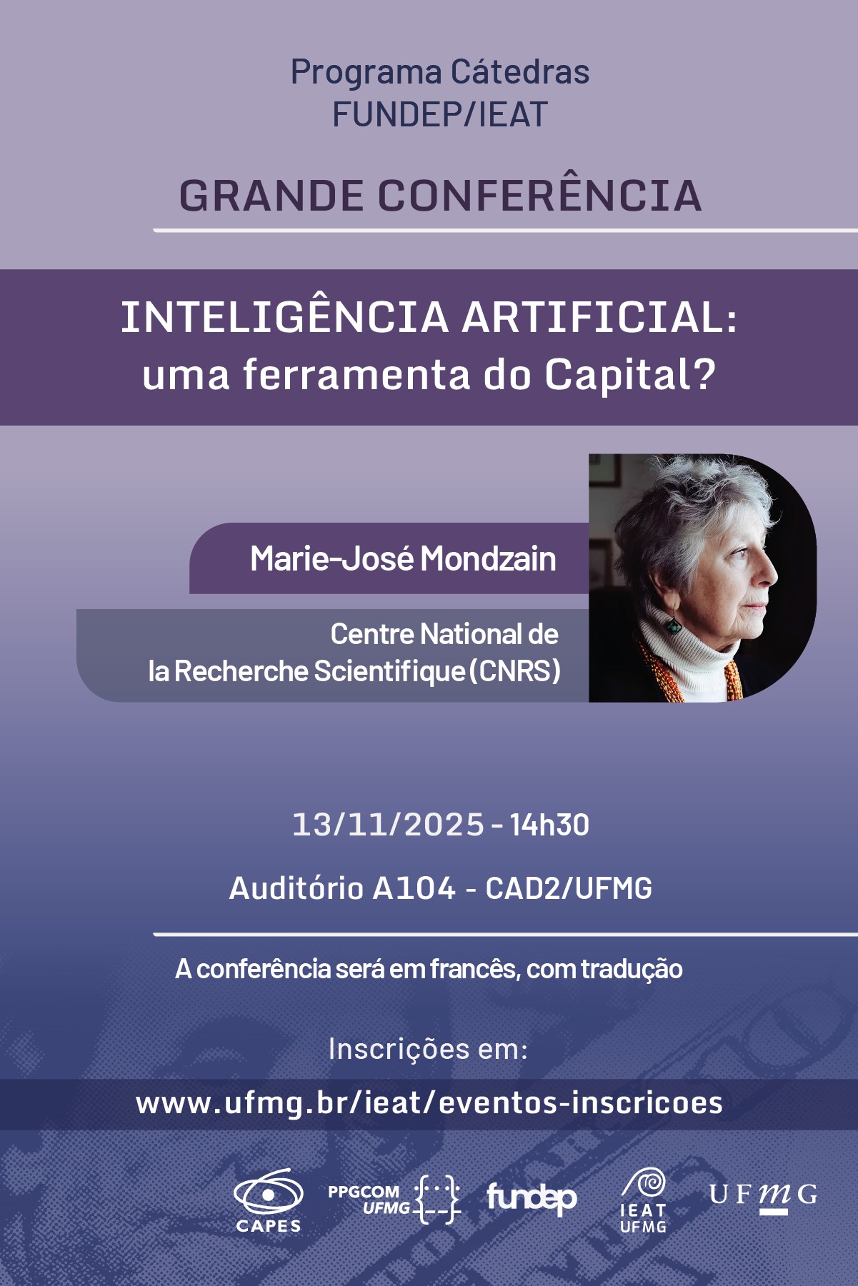 A conferência apresentará a abordagem que fundamenta o livro mais recente de Marie-José Mondzain intitulado Pena capital (Peine Kapital), obra que endereça uma crítica à “decapitação simbólica” realizada pela Inteligência Artificial, ao capitalismo tecnocrático, à plutocracia digital e ao destino de nossas mentes sob a dominação daqueles que assumem a liderança dos povos que eles colonizam e subjugam.